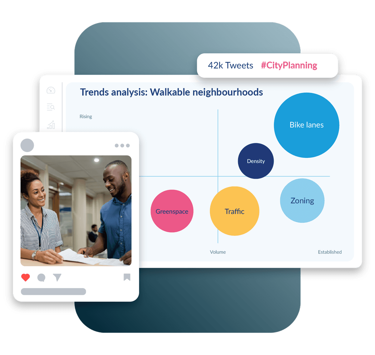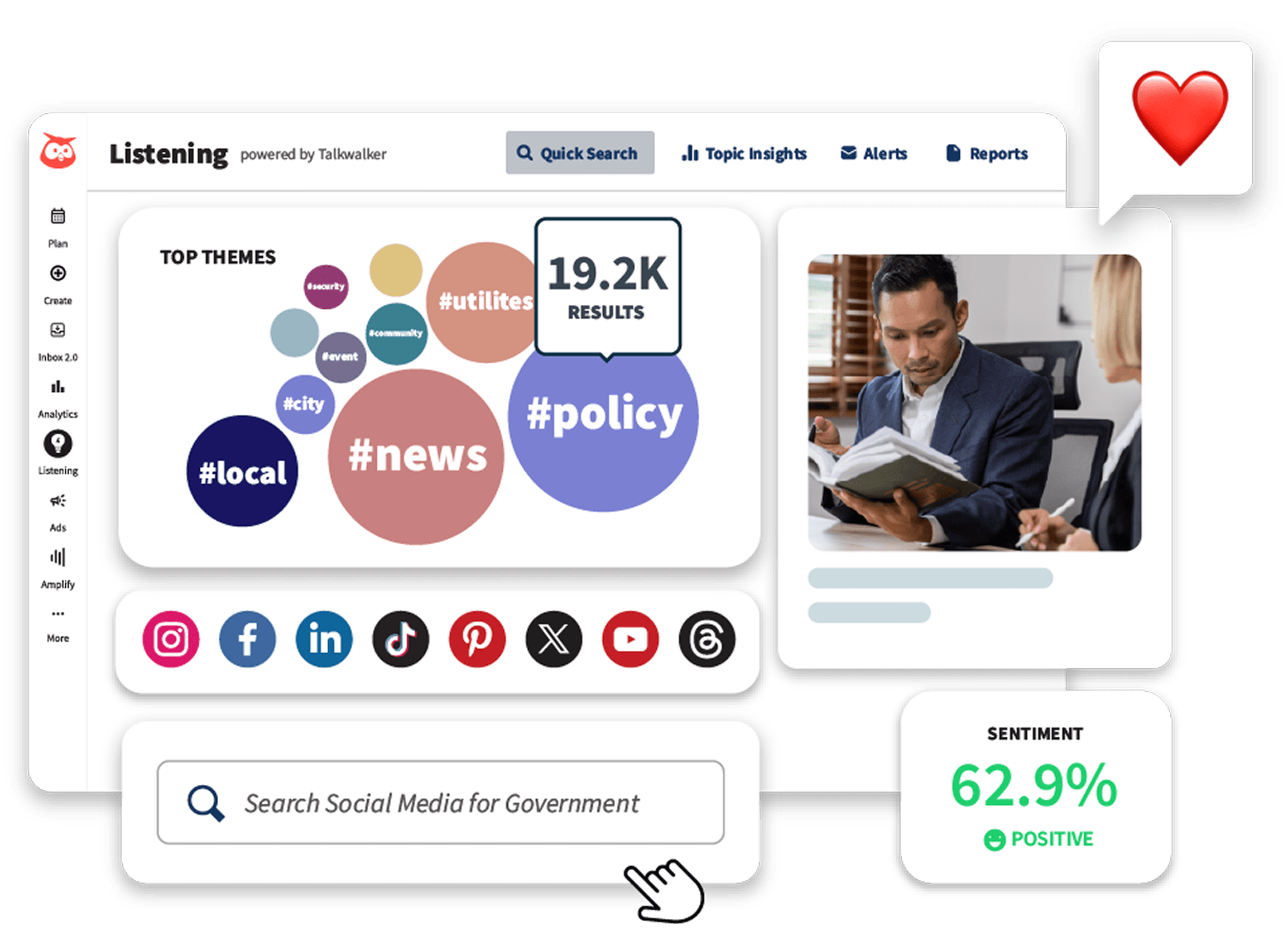 Stay informed with social listening and trend analysis, which helps you spot misinformation, citizen sentiment, and public-sector trends across social media, news, and blogs.